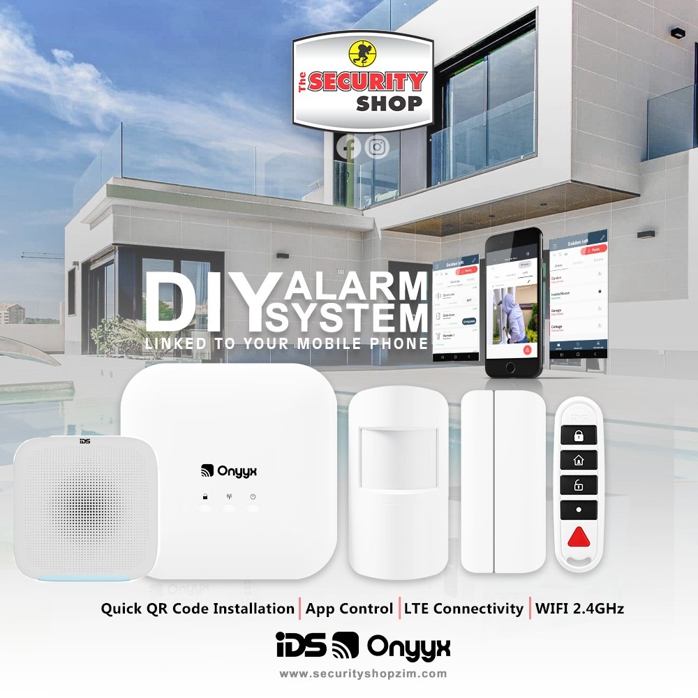 Alarm kit Onyyx, 1x PIR, 1x Door Contact, 1x Siren, with Phone App Connected to Home Wifi ( Response will have a sim if required )