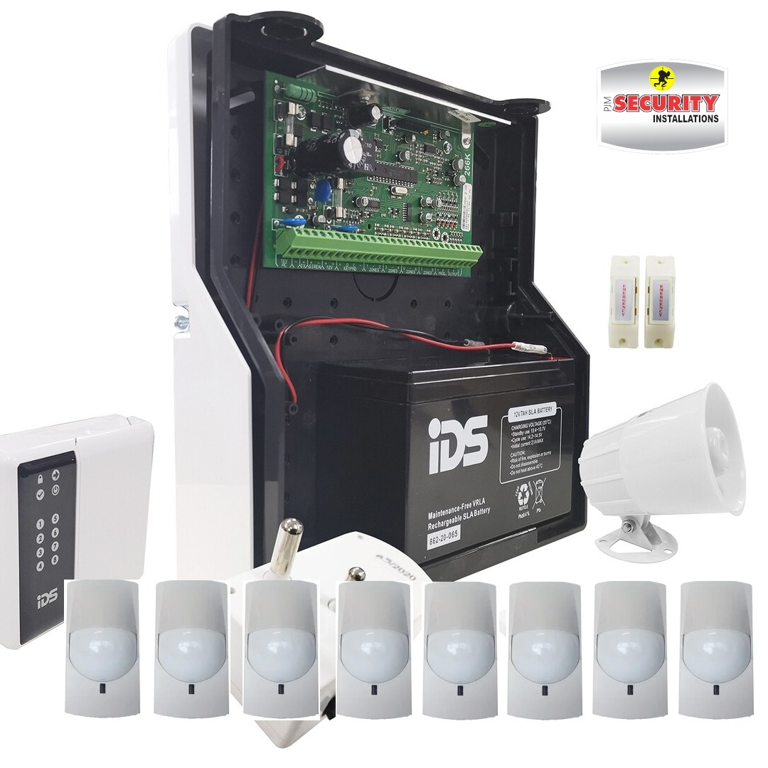 ALARM SYSTEM INDOOR HARDWIRED IDS, 8x PIR Indoor, 2x Remotes