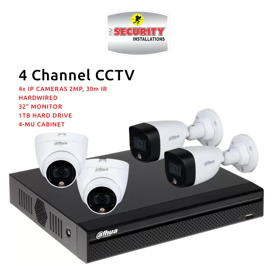 CCTV SYSTEM 4x IP CAMERAS 2MP, 30m IR HARDWIRED 32″ MONITOR 1TB HARD DRIVE 4-MU CABINET
