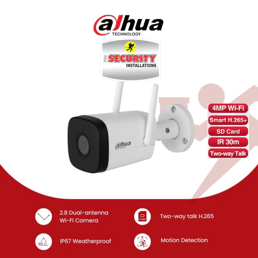 DAHUA Wifi Camera IP66 with IR Night and Audio SD Card -128 Gig, VIEWED OVER PHONE INSTALLED AT SITE WITH NO MORE THAN 10M OF POWER CABLE REQUIRED